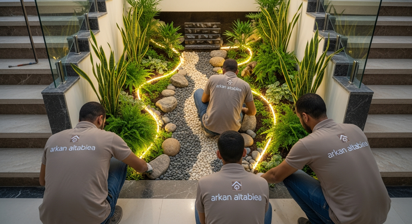 نقدم مجموعة متنوعة من الخدمات تشمل تركيب العشب الصناعي والجدارى، تصميم وتنفيذ الشلالات والنوافير، تركيب المظلات والسواتر، ديكورات وإضاءة الحدائق، بالإضافة إلى تنسيق المساحات الصغيرة مثل المساحات أسفل الدرج.